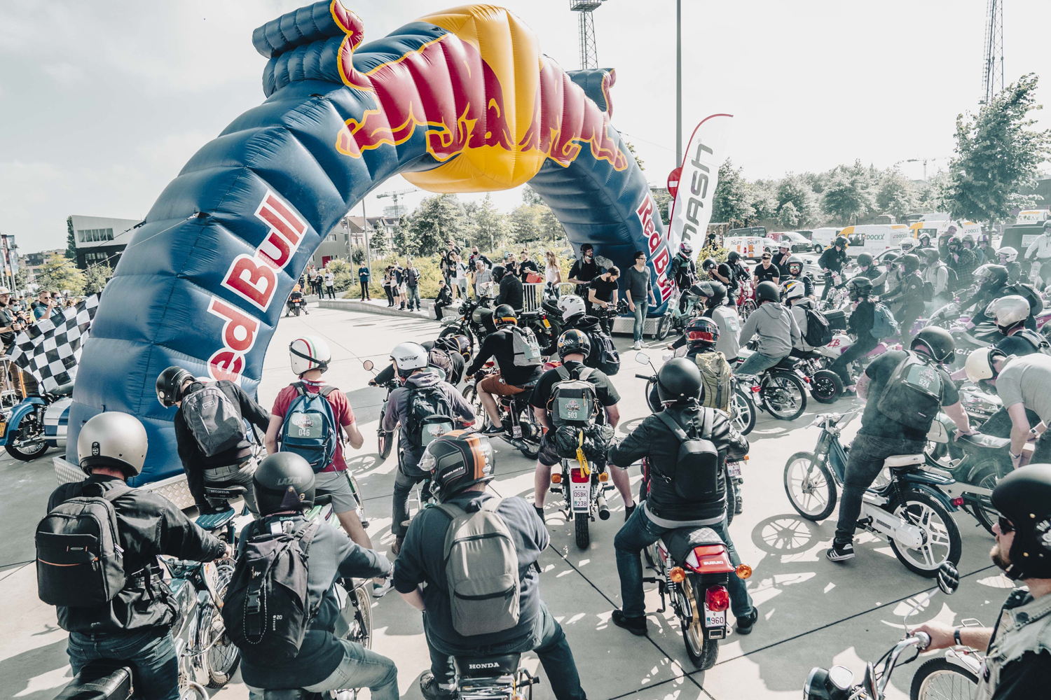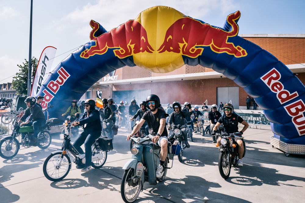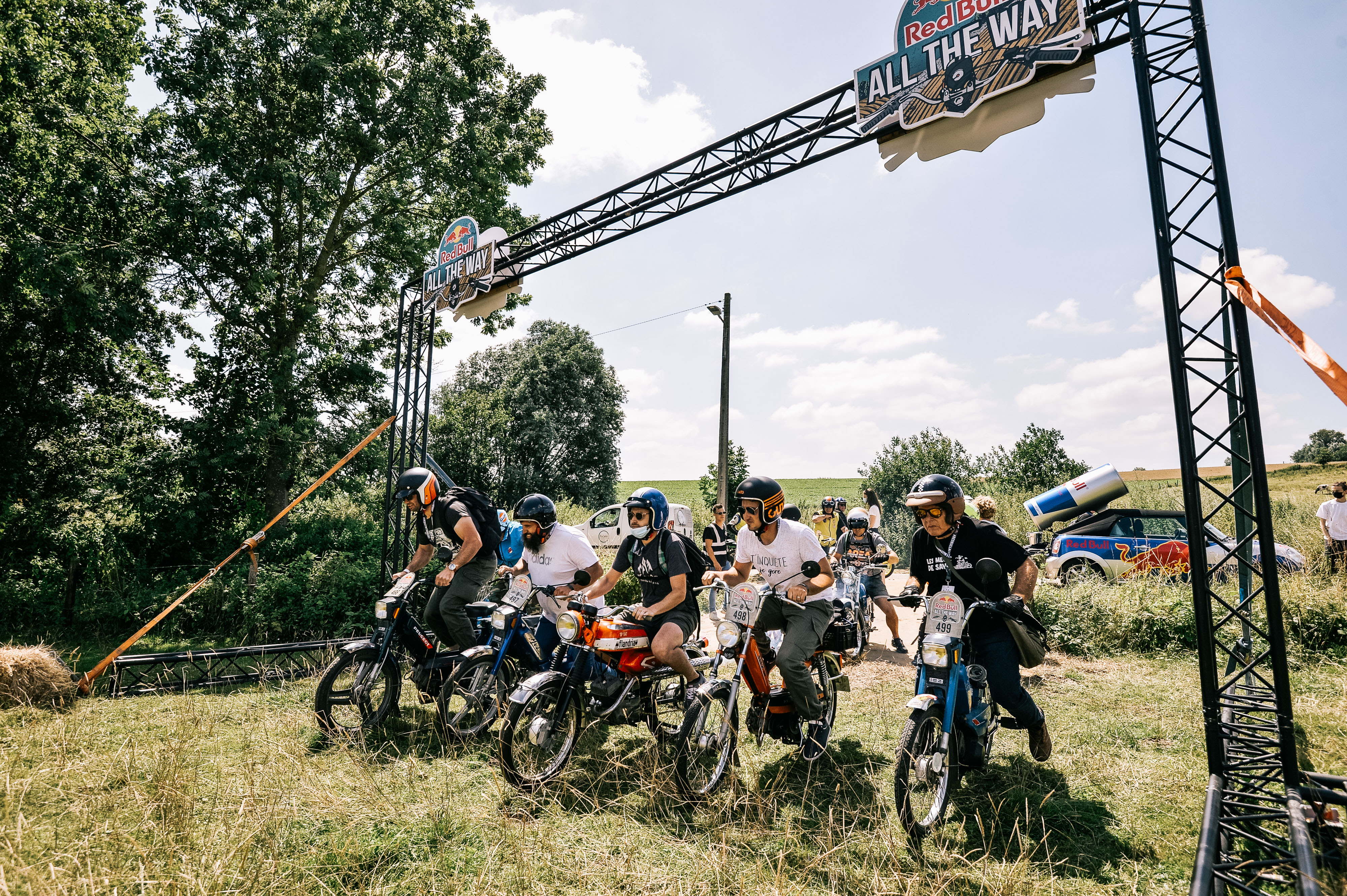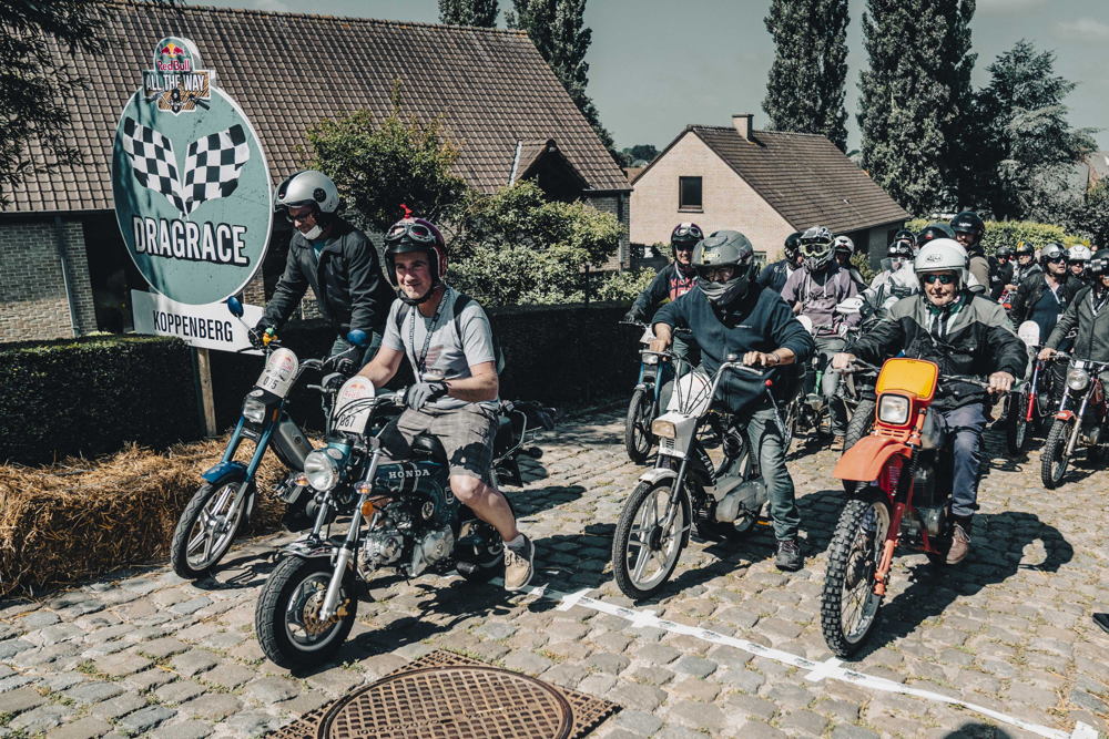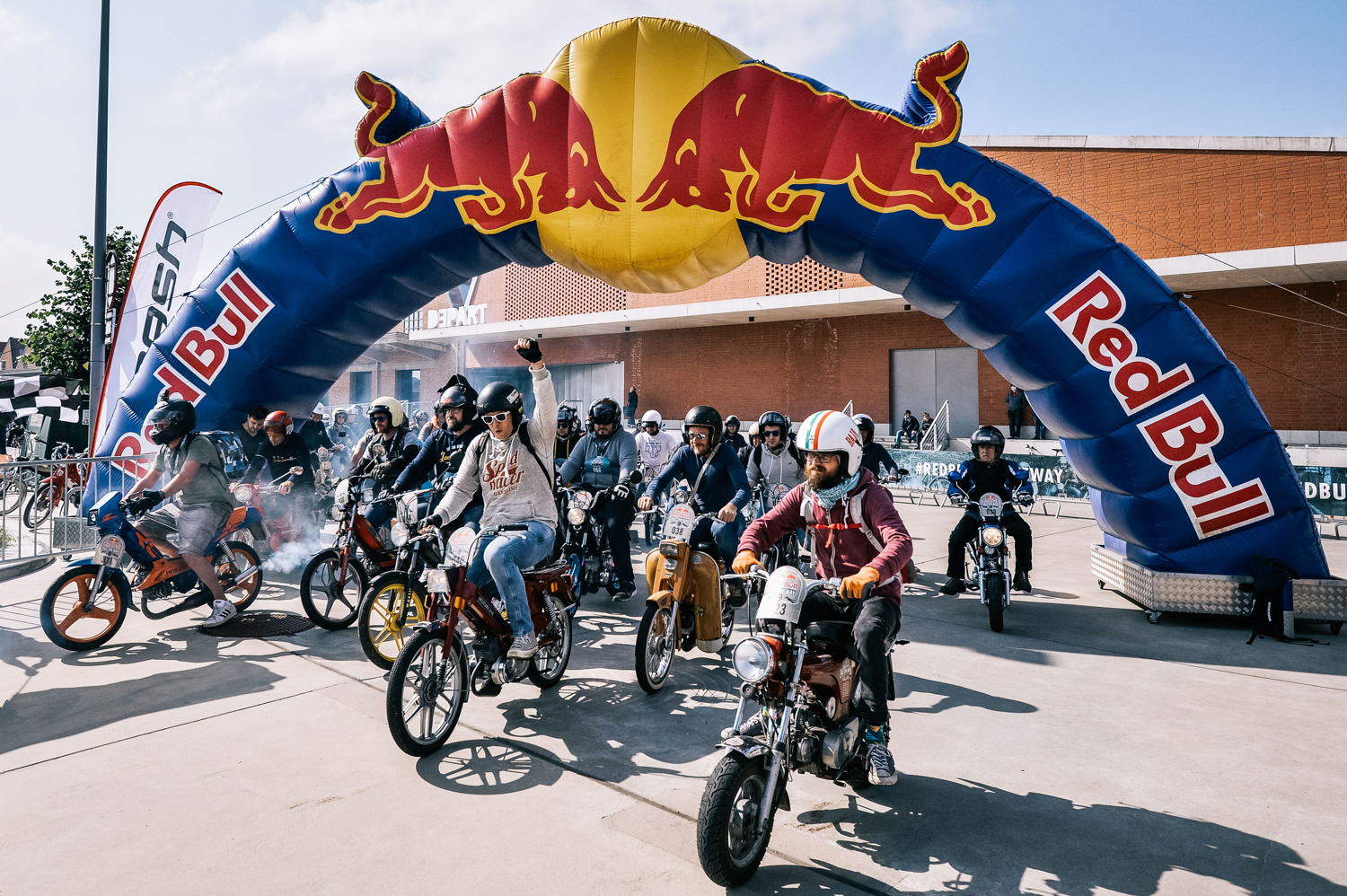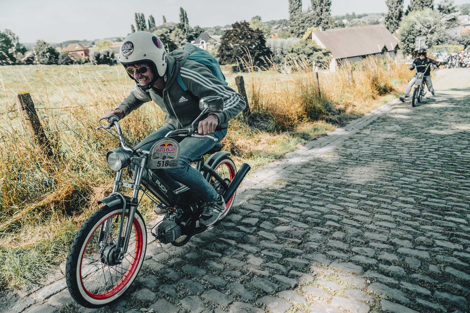Met meer dan 500 waren ze, de dappere deelnemers van de derde editie van Red Bull All The Way. Op hun brommers van 50cc - en daar zaten echt pareltjes tussen - zoefden ze als volleerde flandriens over een uitdagend parcours van maar liefst 154 kilometer. Met start en finish aan evenementenhal Depart in Kortrijk, dwars door onze wondermooie Vlaamse Ardennen en Pays des Collines in Henegouwen. Met een fikse uitdaging op de Koppenberg, de Muur van Geraardsbergen, La Houppe én de Oude Kwaremont. Want om Red Bull All The Way te winnen, moest je niet snel zijn, maar wel zoveel mogelijk punten verdienen!