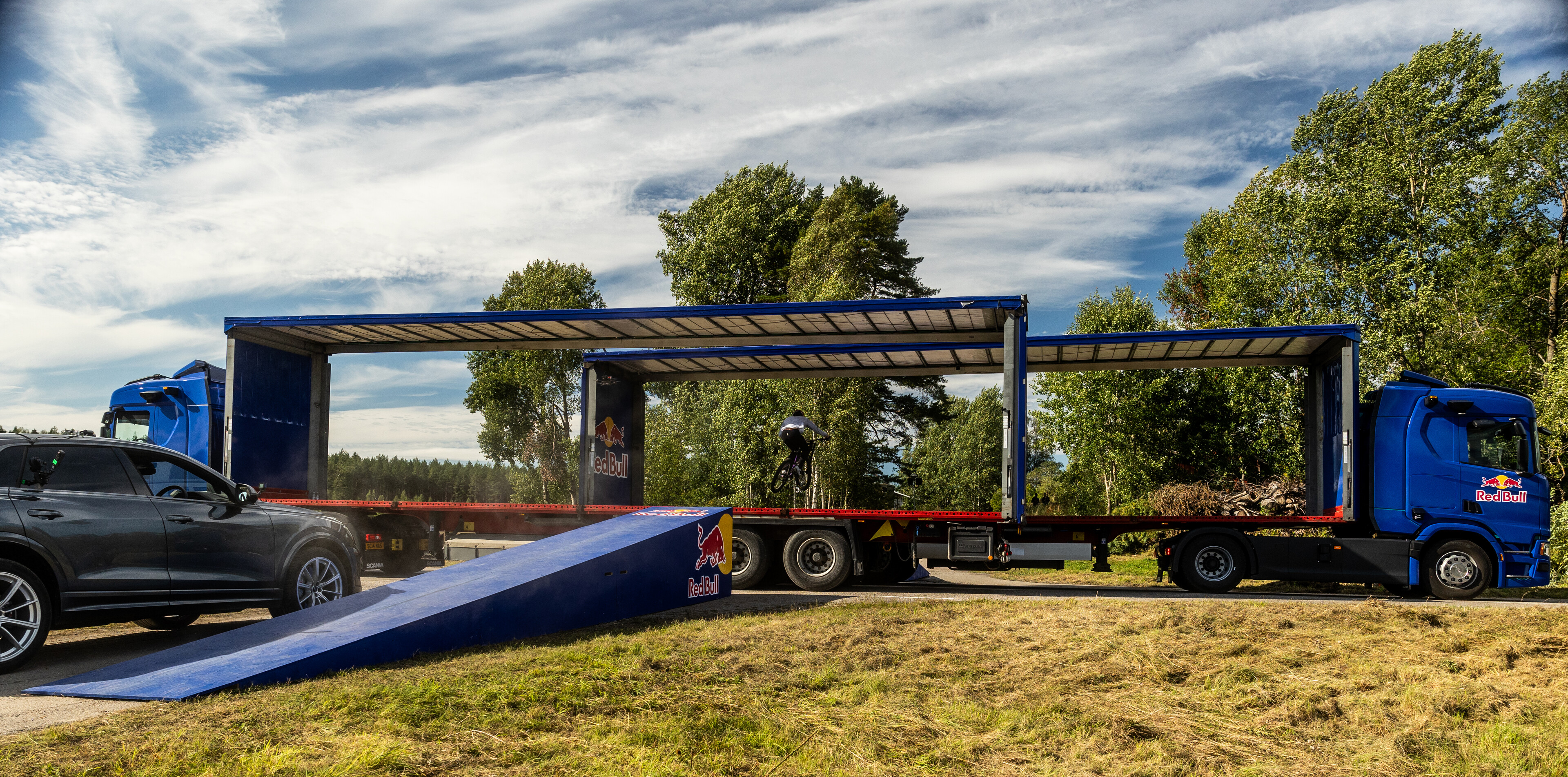 Millimeterwerk! De Britse mountainbiker Matt Jones is doorheen twee zelfrijdende vrachtwagens gesprongen, met een foutenmarge van minder dan één seconde. De trucks - die in tegengestelde richting reden - werden volledig aangestuurd via geavanceerde camera’s, sensoren en datagestuurde systemen. Timing, vertrouwen in de technologie, en de skills van MTB-legende Jones deden de sprong tot op de milliseconde kloppen.